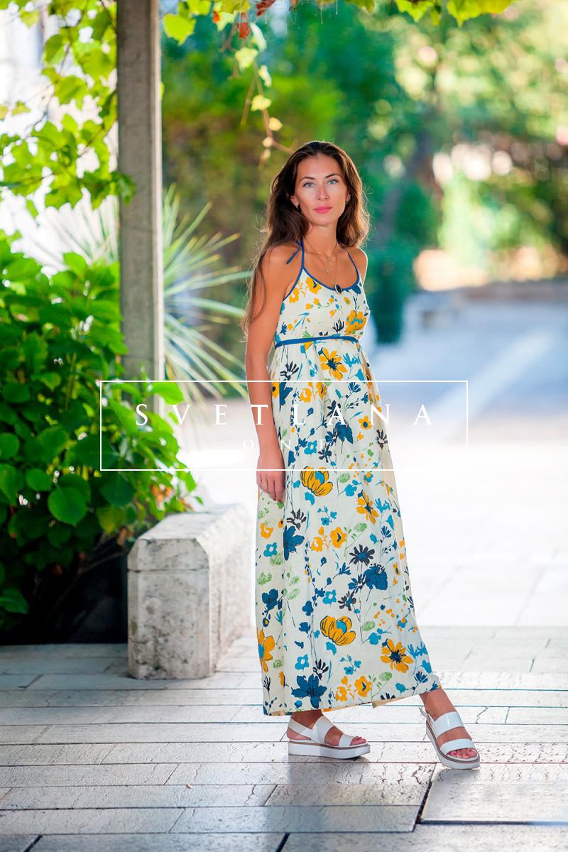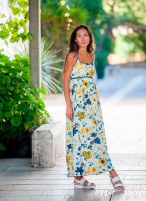 Сарафан на бретелях крой "ампир" - сочетание красоты и практичности для жаркого времени года. Обладательница данной модели в полной мере сможет ощутить все ее достоинства. Длина макси очень удобна в городе, дает ощущение прохлады, бретели регулируются и используются как классическим способом так и завязкой на шее. Эластичная резинка на спинке позволяет модели идеально "садиться" на фигуру и сохранять комфорт в течение всего дня. Яркие цветочные принты раскрасят ваше лето и будут дарить свежесть и вдохновение. Эта вещь обязательно станет Вашей любимой!
